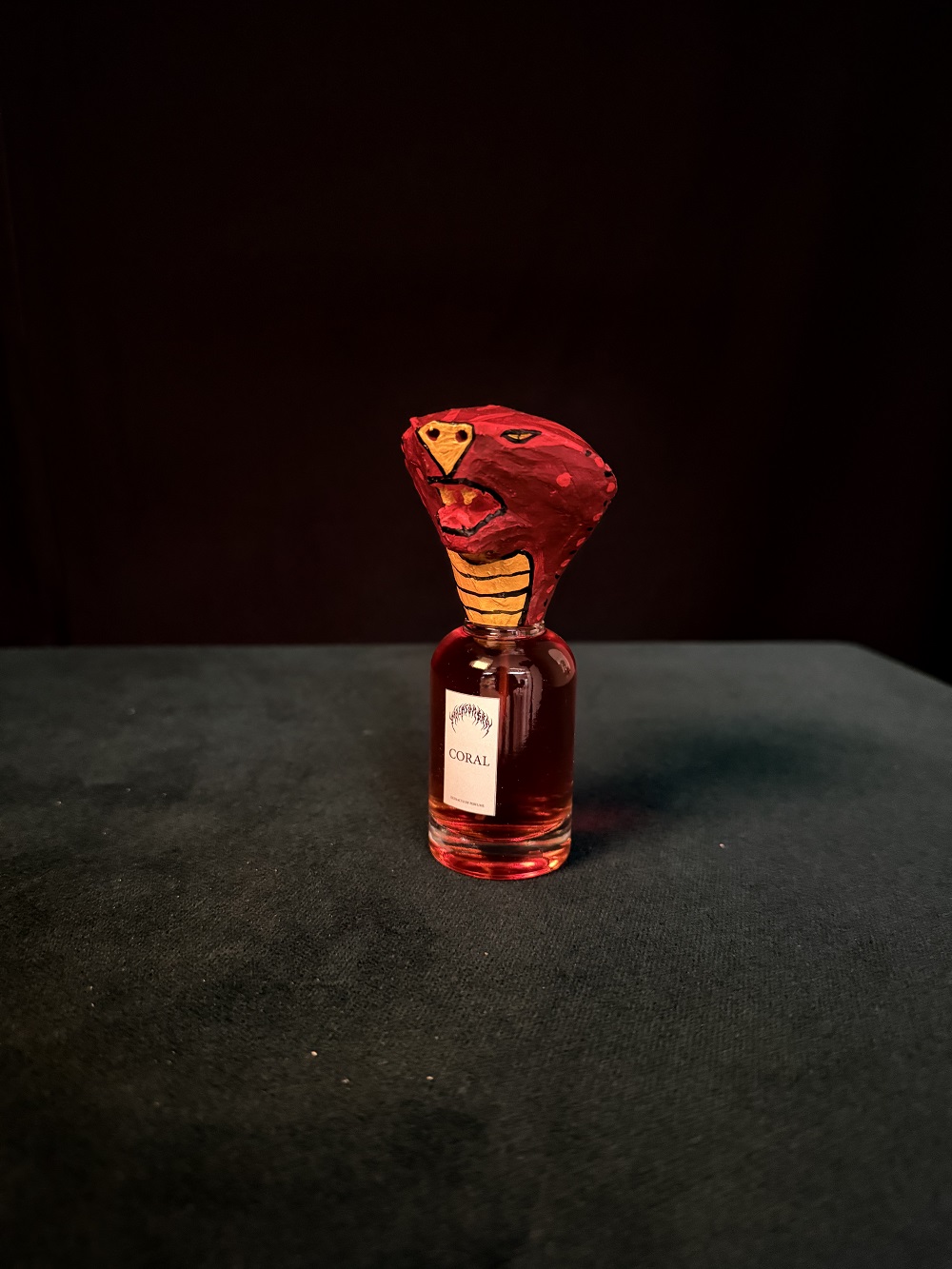 Coral nace de la memoria de los villanos de la infancia. De uno en particular: turbante, mirada oblicua y una serpiente siempre cerca. Si lo reconoces, ya sabes por dónde respira esta pieza.